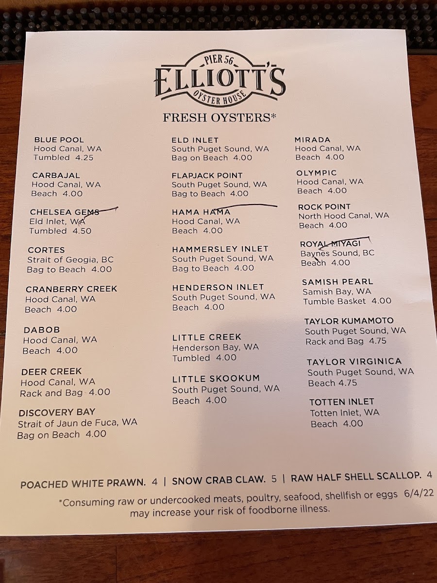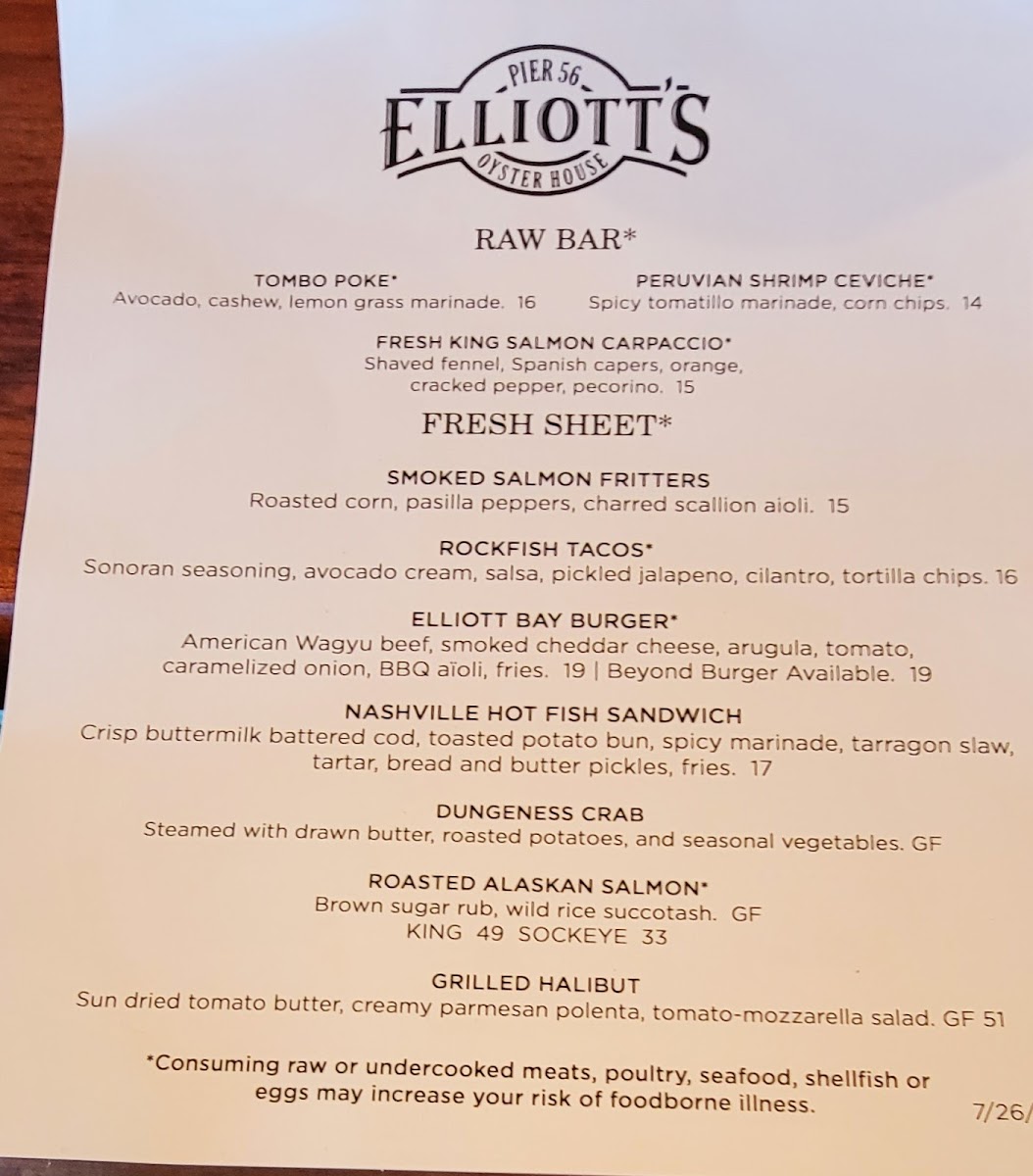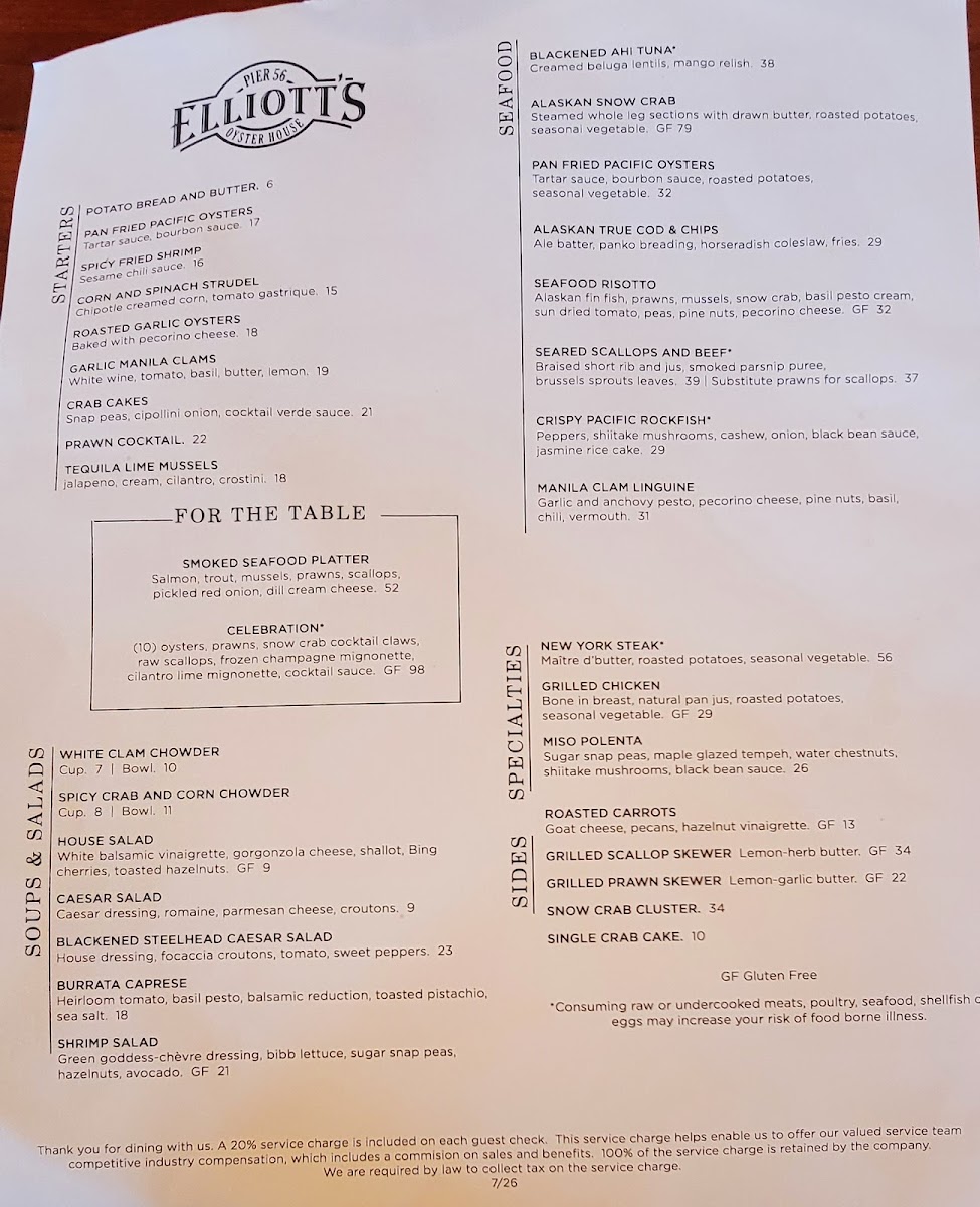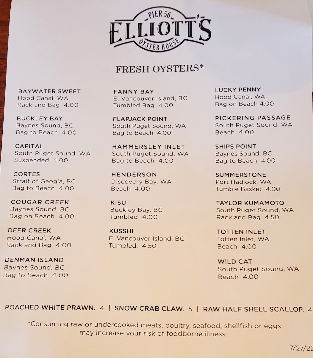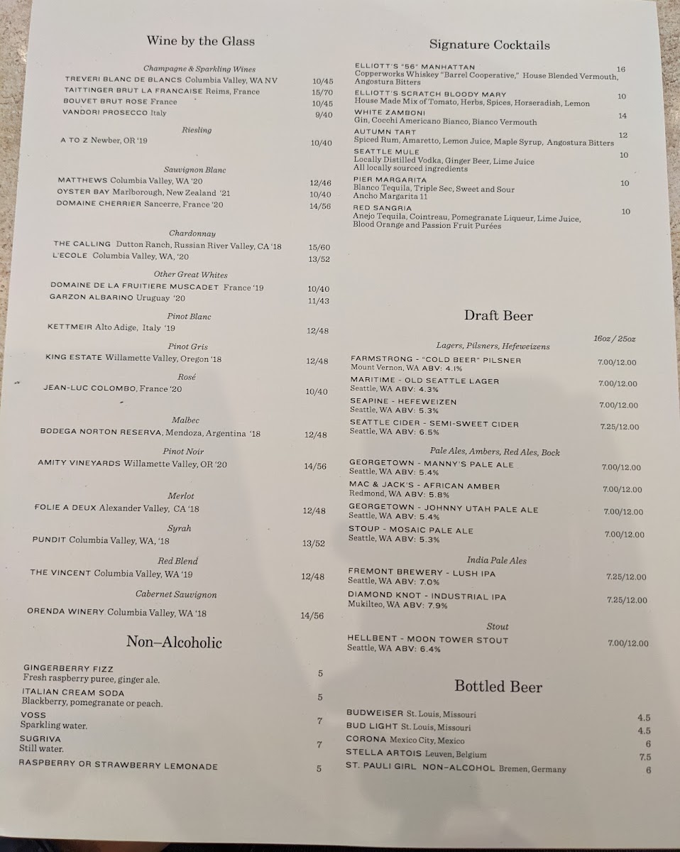 Welcome to Elliott's Oyster House, a culinary gem nestled along Seattle's waterfront at 1201 Alaskan Way. Renowned for its commitment to serving the freshest seafood, Elliott’s offers a menu rich in flavors inspired by the Pacific Northwest. The highlights include their well-loved Caesar Salad and White Clam Chowder, but it’s the oysters that take center stage—craveably fresh and diverse. For heartier fare, indulge in dishes like the Double R Ranch New York Steak or the decadent Spicy Crab & Corn Chowder.